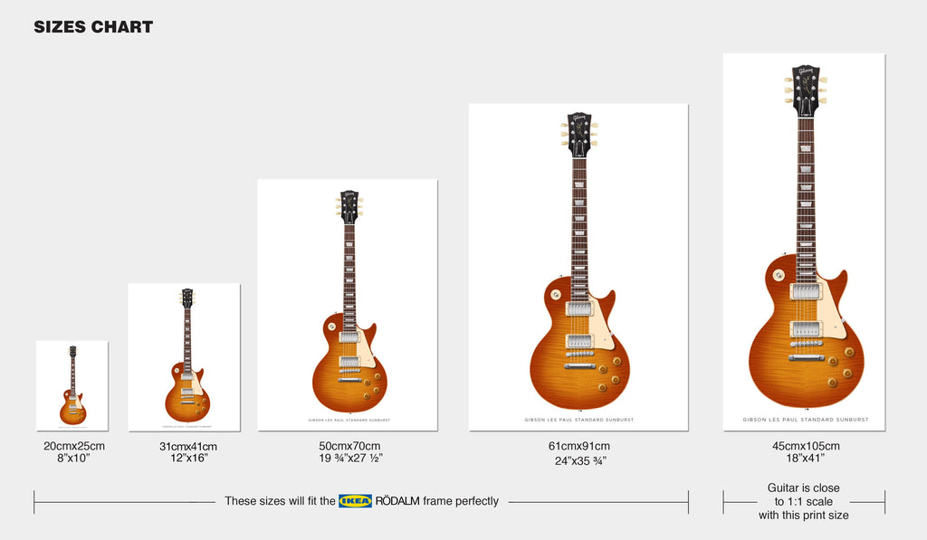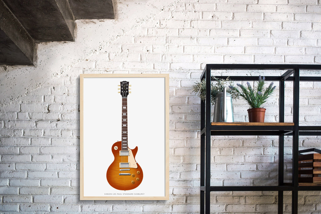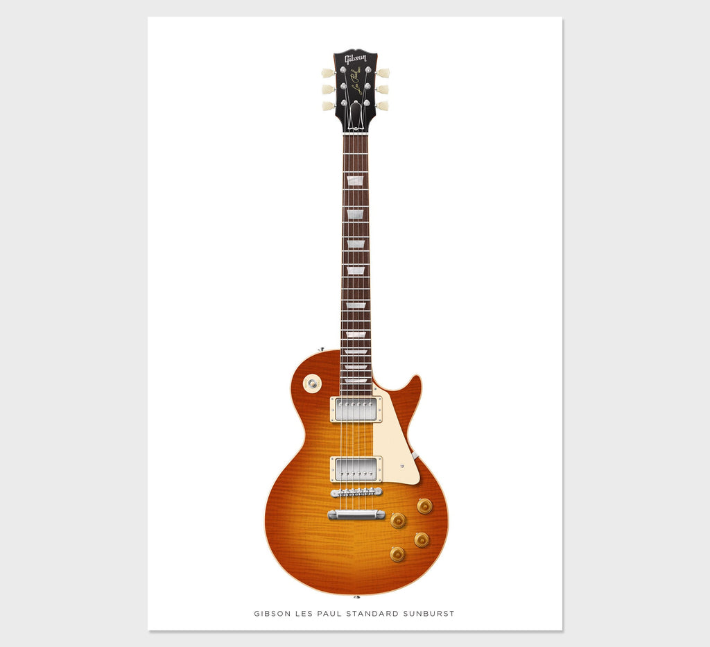 Gibson Les Paul Standard Guitar Poster Sunburst. Personalized Gifts, Wall Decor, Guitar Print, Guitar Art