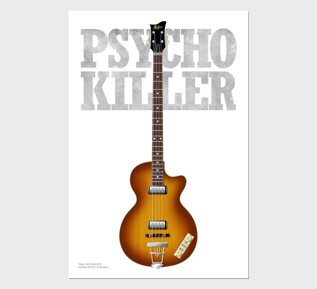 Tina Weymouth's Hofner 500/2 Club Bass Psycho Killer Typography Guitar Poster, Wall Decor, Guitar Print, Guitar Art